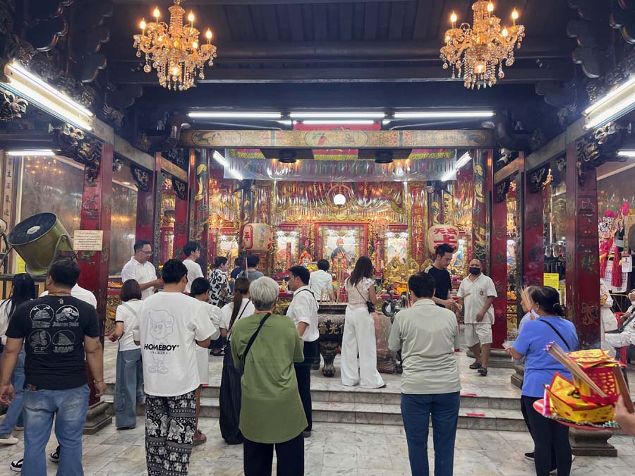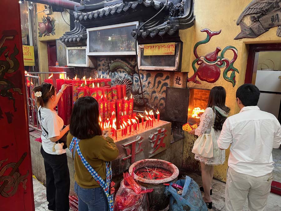 From the market, we moved through a neighborhood known for making Buddha statues before paying respect at a Chinese shrine. This was one of those stretches where the “walking” part of the tour really matters, because the context is the point.